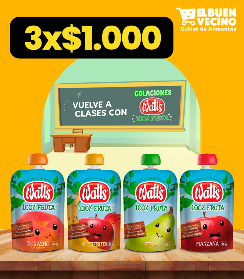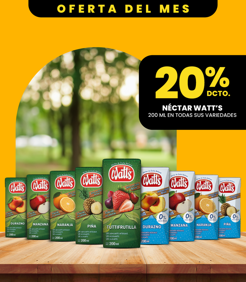 Precio original $1.500Precio original $1.500 - Precio original $1.500Precio original $1.500Precio actual $1.200$1.200 - $1.200Precio actual $1.200Néctar Watt's TuttiFrutilla 6x200ml