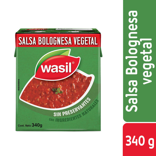 WasilSalsa lista Bolognesa Vegetal Wasil 340g, elaborada con ingredientes naturales y sin preservantes.