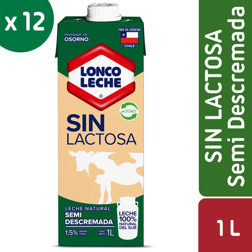Precio original $17.040 - Precio original $17.040Precio original $17.040$17.040$17.040 - $17.040Precio actual $17.040Leche Semidescremada Sin Lactosa Loncoleche 12x1LLoncolecheLeche fluida natural semidescremada sin lactosa Loncoleche, contiene 1,5% de materia grasa y enriquecida con vitaminas A+D. Leche 100% natural del... Ver todos los detallesPrecio original $17.040 - Precio original $17.040Precio original $17.040$17.040$17.040 - $17.040Precio actual $17.040Ahorra 0% Ahorra 0%