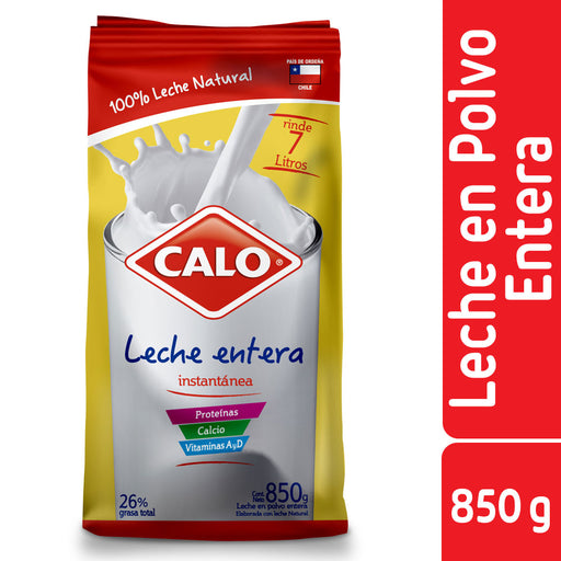 CaloLeche en polvo entera instantánea Calo, con 26% de grasa total, buena fuente de proteínas, fortificada en vitaminas A+D, y excelente fuente de calcio.